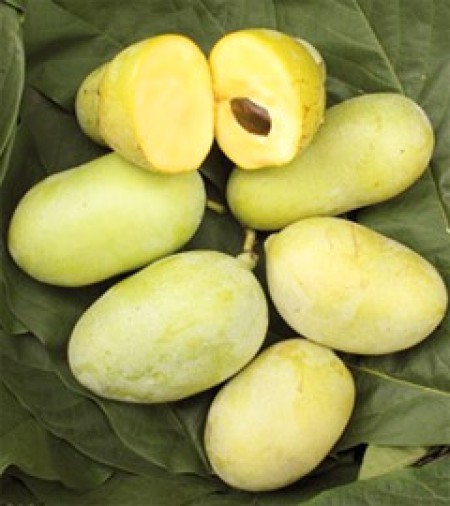 Asimina izvira iz Severne Amerike, kjer jo poznajo kot indijansko banano ali paw-paw. Sorta je samooplodna. Meso je rumene barve. Okus spominja na mešanico manga, ananasa in banane. Cveti v aprilu z temno vijoličnimi cvetovi.