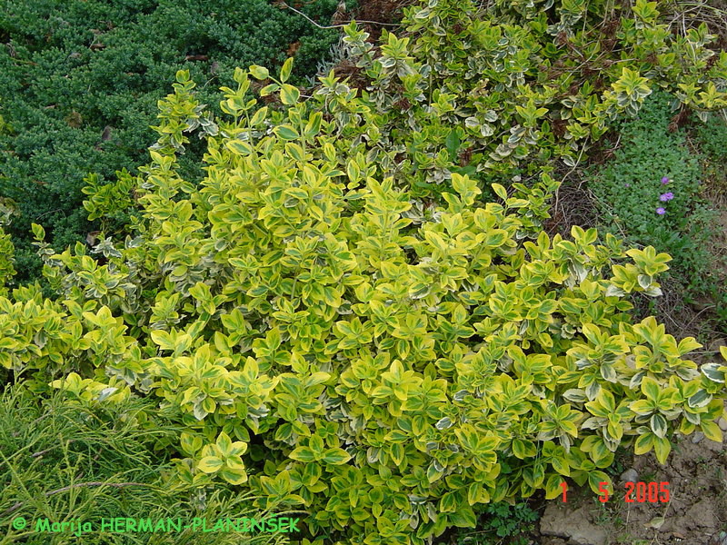 Zanimiva skupina pisanolistnih nižje rastočih grmovnic so trdoleske. Trdoleski z rumeno in zeleno barvo v listju sta Euonymus fotunei 'Blondy' in Euonymus fortunei 'Emerald'n Gold'. Prva trdoleska sorta 'Blondy' ima zeleni rob in rumeno sredico, ki se v zimskem času obarva rožnato. Je dobra prekrovna rastlina. Razrašča se s poganjki, ki imajo koreninice. Z njimi se lahko oprijema tudi zidu in drugih opor po katerih lahko pleza. V višino doseže do 40 cm, v širino pa do 60 cm. Druga trdoleska sorta 'Emerald'n Gold' pa ima rumene robove in zeleno sredico. Rumeni robovi se v hladnejšem obdobju leta obarvajo rožnato. Tako kot predhodnica je prekrovna rastlina, lahko pa je tudi grm, če je ne režemo nizko. V višino in širino doseže do 75 cm. Zelo dobro prenaša rez in se hitro obrašča, tudi urbana mesta prenaša ter konkurenco korenin drugih rastlin. Še eno zanimivo pisanolistno trdolesko sem izbrala in sicer Euonymus fortunei 'Emerald Gaiety'. Le-ta trdoleska pa ima bel rob in zeleno sredico. Bela ploskev se v jeseni začne barvati v rdeče rožnato barvo. Tudi ta sorta trdoleske je primerna za prekrivanje tal, prav tako pa se jo lahko pusti rasti kot grm. V višino doseže do 1 m, v širino pa 1.5 m. Vse naštete trdoleske se lahko sadijo na katero koli lego (senca, pol-senca, sonce) v vrtu.