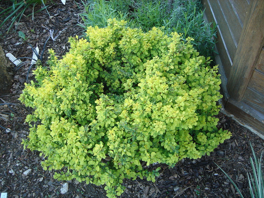 Zanimiva grmovnica je tudi pritlikavi rumenolistni češmin (Berberis thunbergii 'Bonanza Gold'). Spada v skupino srednje visokih grmovnic, saj doseže višino med 75 in 150 cm, v širino pa med 75 in 100 cm. Cveteti začne v mesecu juliju in cveti še v mesecu avgustu. Cvetovi so bledo rumene barve in manj opazni. Iz cvetov se v jeseni razvijejo rdeči plodovi, ki dajo zanimiv kontrast rumenim listom. Češmin lahko sadimo na sončno do pol-senčno lego. Na zelo močnem soncu lahko dobi nekaj opeklin na listih. V vrtu ga sadimo kot samostojno grmovnico ali pa v mešane cvetoče žive meje.