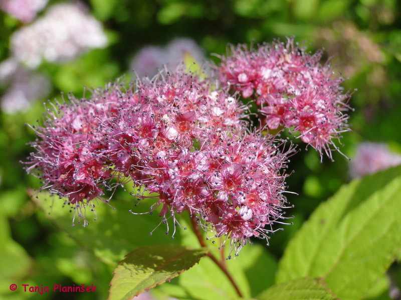 • japonska zlatolistna medvejka (S. japonica 'Goldflame') doseže višino do enega metra, cveti rožnato v juniju in vse do septembra,