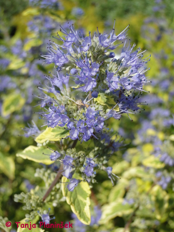 Bradatec (Caryopteris) je zanimiv grm, ki doseže višino med 60 cm in enim metrom. Je počasi rastoč grmiček. Cveteti začne v mesecu avgustu in cveti do septembra. Cvetovi so vijolično-modre barve. Grm cveti zelo bogato in čebele ga zelo rade obletavajo. Najbolje uspeva na svežih, vlažnih in dobro odcednih tleh. Ustreza mu sončna lega, saj le takrat cveti zelo bogato. V vrtovih največkrat sadimo C. clandonensis 'Heavenly Blue', ki ima temno modre cvetove in pisanolistno vrsto C. clandonensis 'Summer Sorbet', kjer vijolično-modri cvetovi še bolj pridejo do izraza.