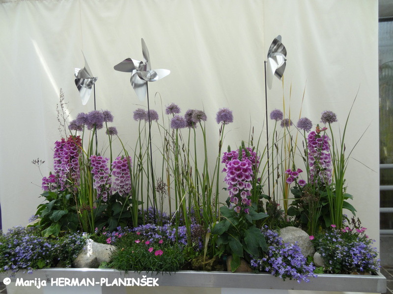 - Allium sp. – okrasna čebula (vijolična barva cveta),