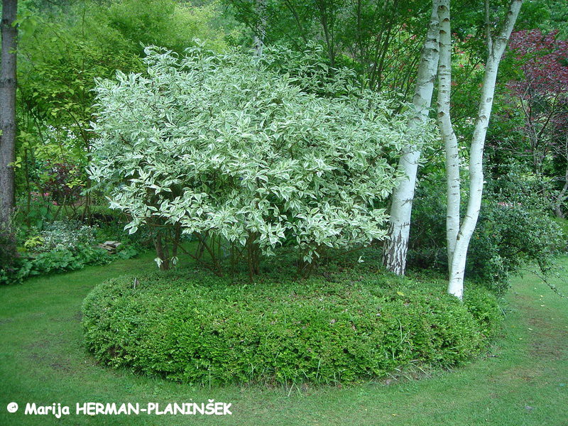 - Cornus alba 'Sibirica Variegata' – pisanolistni dren,