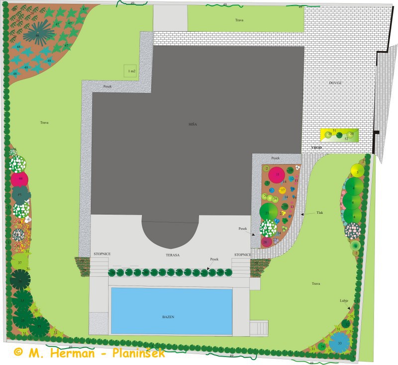 Ko imamo vse osnovne parametre vrisane, se s stranko pogovorimo, kje bo kakšen vrt oz. čemu bo namenjen. Prostor okoli hiše lahko razdelimo na: