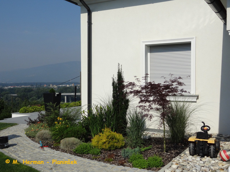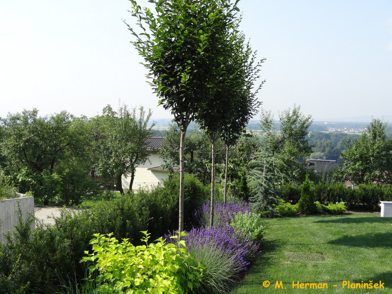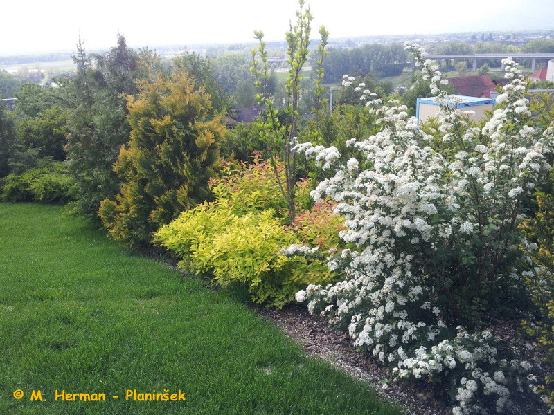 - grmovnicami (zanimive zaradi cvetenja, barve lubja, barve listja (čez leto ali jesenske), oblike listov, zaradi plodov, oblike razrasti),