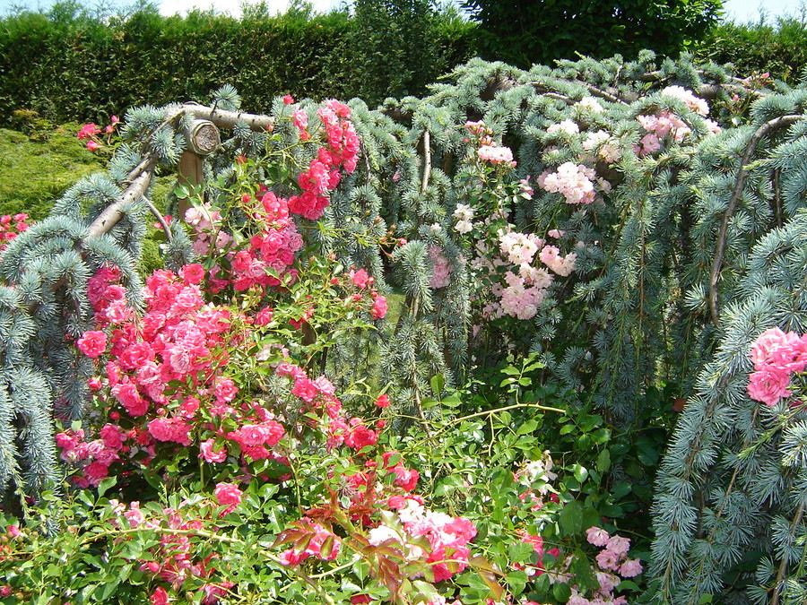 Povešajoča cedra in pokrovne vrtnice