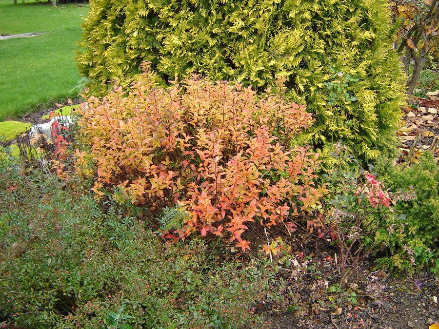 Spirea japonica 'Goldflame' je lahko dekorativna tudi v jeseni