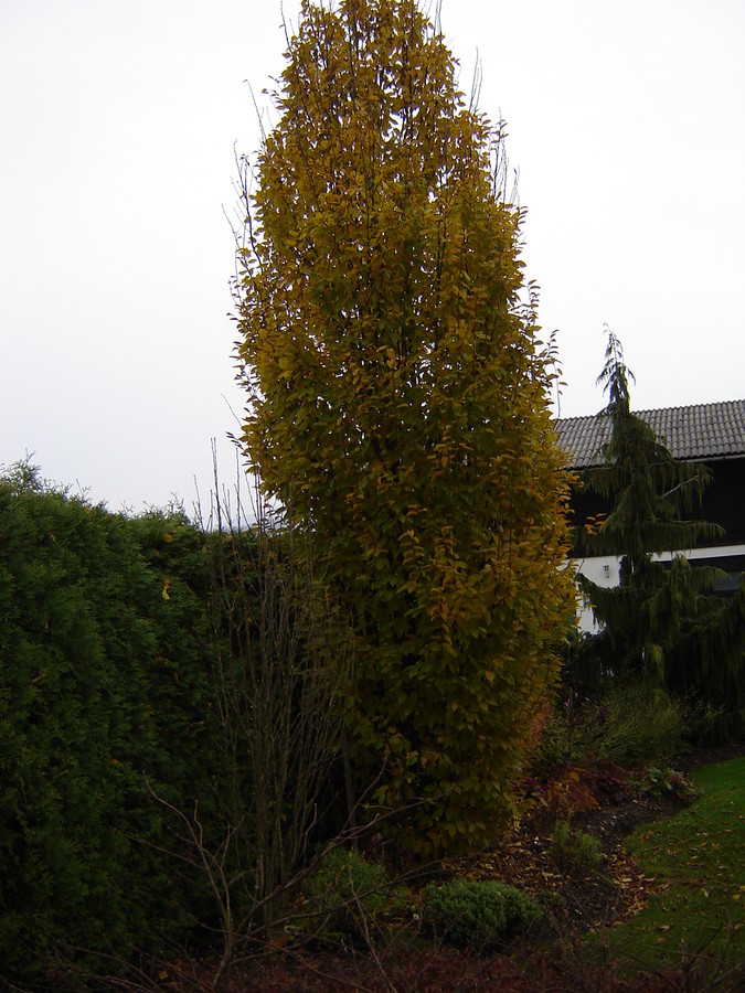 Gaber (Carpinus betulus 'Fastigiata') se je odel v rumeno jesensko barvo