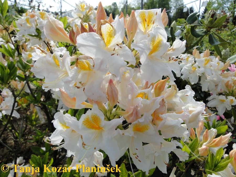 Strokovno ime rastline: Azalea hy. 'Schneegold' (= Rhododendron luteum 'Schneegold')