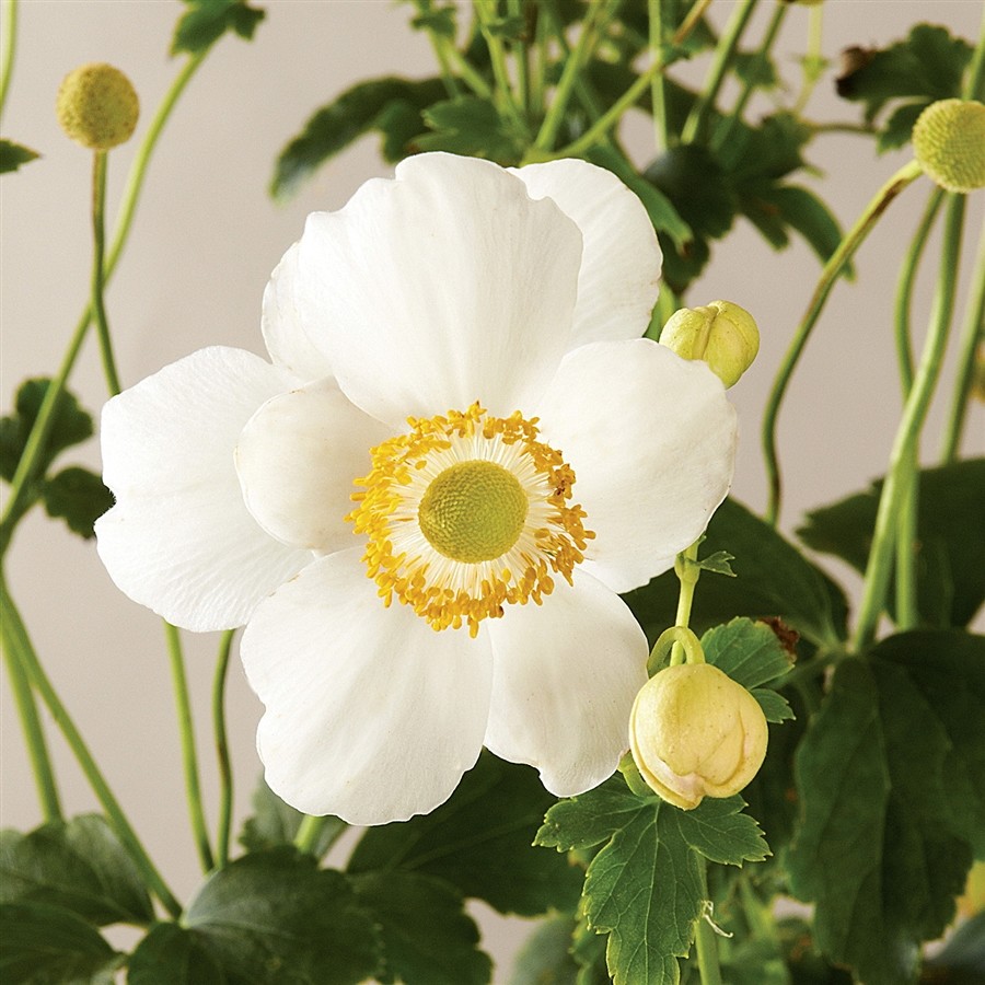 Jesensko anemono sadimo na sončno ali delno senčno lego, kjer je rastišče založeno s hranili, humusno, vlažno in propustno. Cveti od avgusta do oktobra z belimi cvetovi. Na m2 sadimo 6 do 9 rastlin.