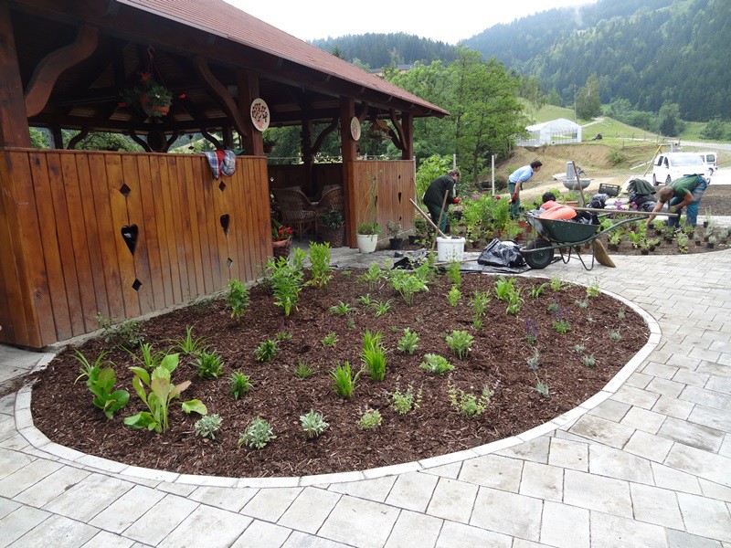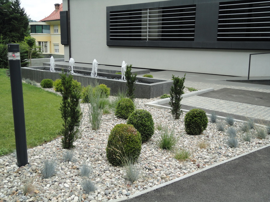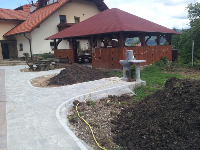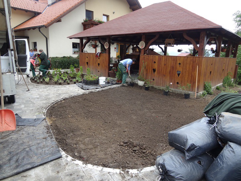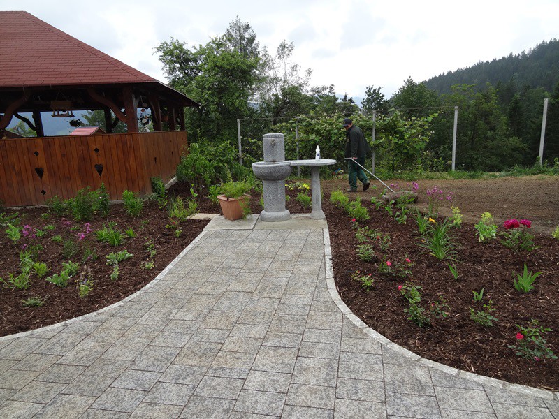 Pri sami izvedbi na terenu vključujemo tudi zunanje sodelavce, predvsem pri izdelavi vodnih motivov, vrtnega pohištva in izdelkih iz kamna.