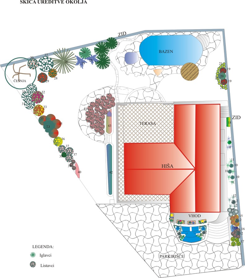 Načrt vrta je podlaga po kateri vam na vašo željo z našimi vrtnarji strokovno zasadimo in uredimo okolico vaše hiše. Prav tako zasajamo celotna naselja in parke.