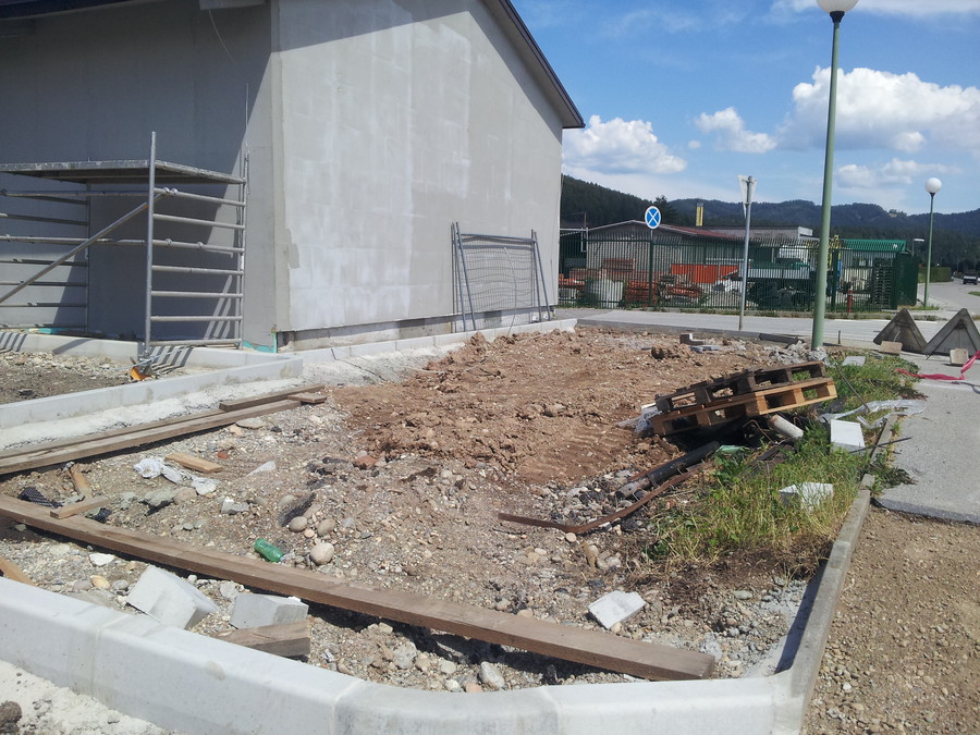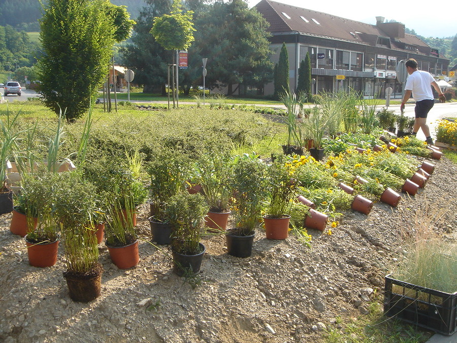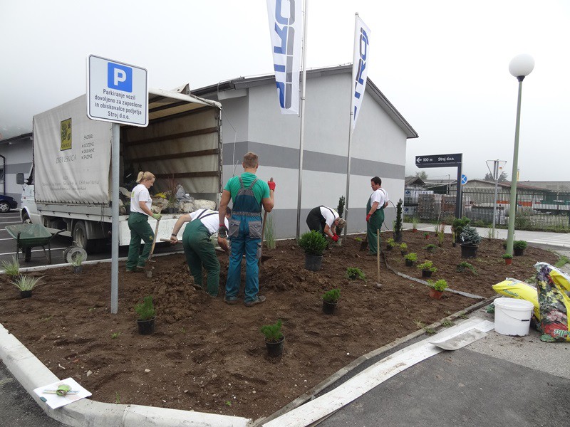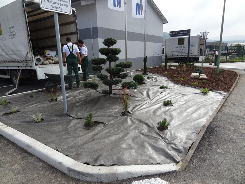 Saditev pred poslovnim objektom v Ločah